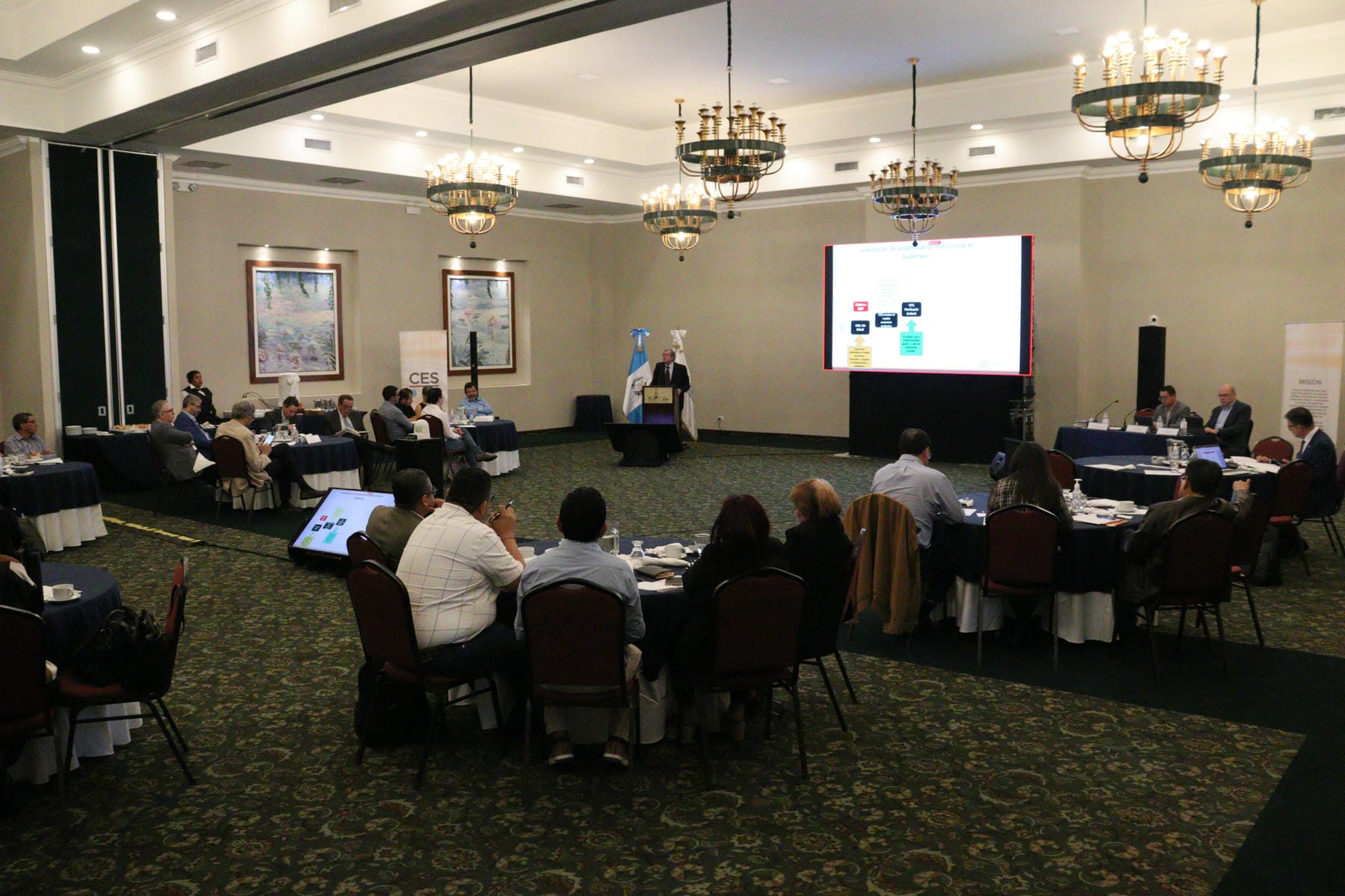 Evolución histórica de la planificación institucional Durante su intervención, el Dr. Alonso abordó la evolución histórica de la planificación institucional en Guatemala, desde los antecedentes del informe Britnell de 1949 hasta la situación actual, destacando los momentos clave que definieron la estructura del modelo económico productivo nacional. Subrayó que la eliminación del enfoque de planificación estatal en 1997 marcó un punto crítico, generando una dispersión institucional que aún afecta la capacidad del Estado para definir estrategias integrales de desarrollo.