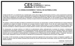 Cambios en la administración pública para recuperar la confianza y credibilidad en las instituciones del Estado: El CES recomienda al Organismo Legislativo priorizar la reforma al sistema electoral y cambiar los procesos de compras y contrataciones, así como del servicio civil.